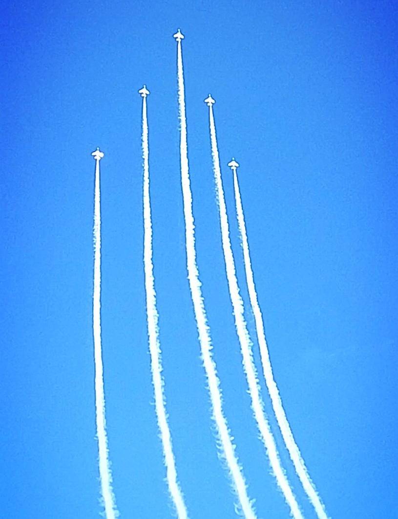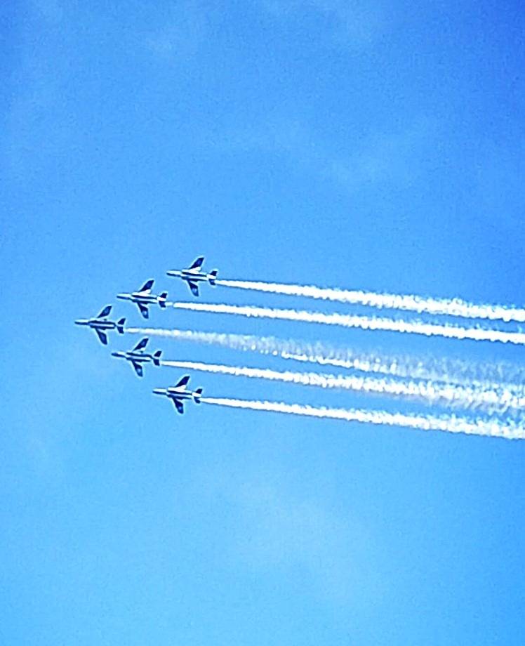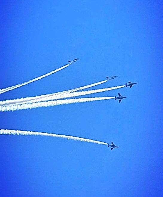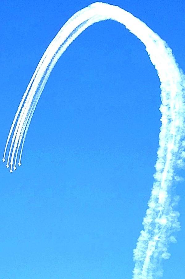 ブルーインパルスの見事な飛行に歓声が
