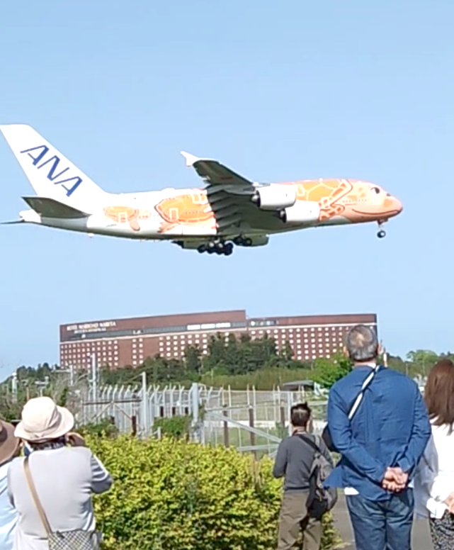2025年6月12日 成田にドライブ 先日、成田にドライブに行って来ました 空港の側には飛行機を間近で見れる公園が いくつもあり、風向きなどで飛ぶ方向が違います その日は「桜の山公園」と言う場所に行きました ここの公園では着陸する飛行機のアナウンスを してくれます 飛行機の種類が分かりやすい 人気のスポットです この日はハワイからのA380「フライング・ホヌ」が 丁度降りてきてくれて、迫力が凄く近くで 見れて良かったです 物流G K.H