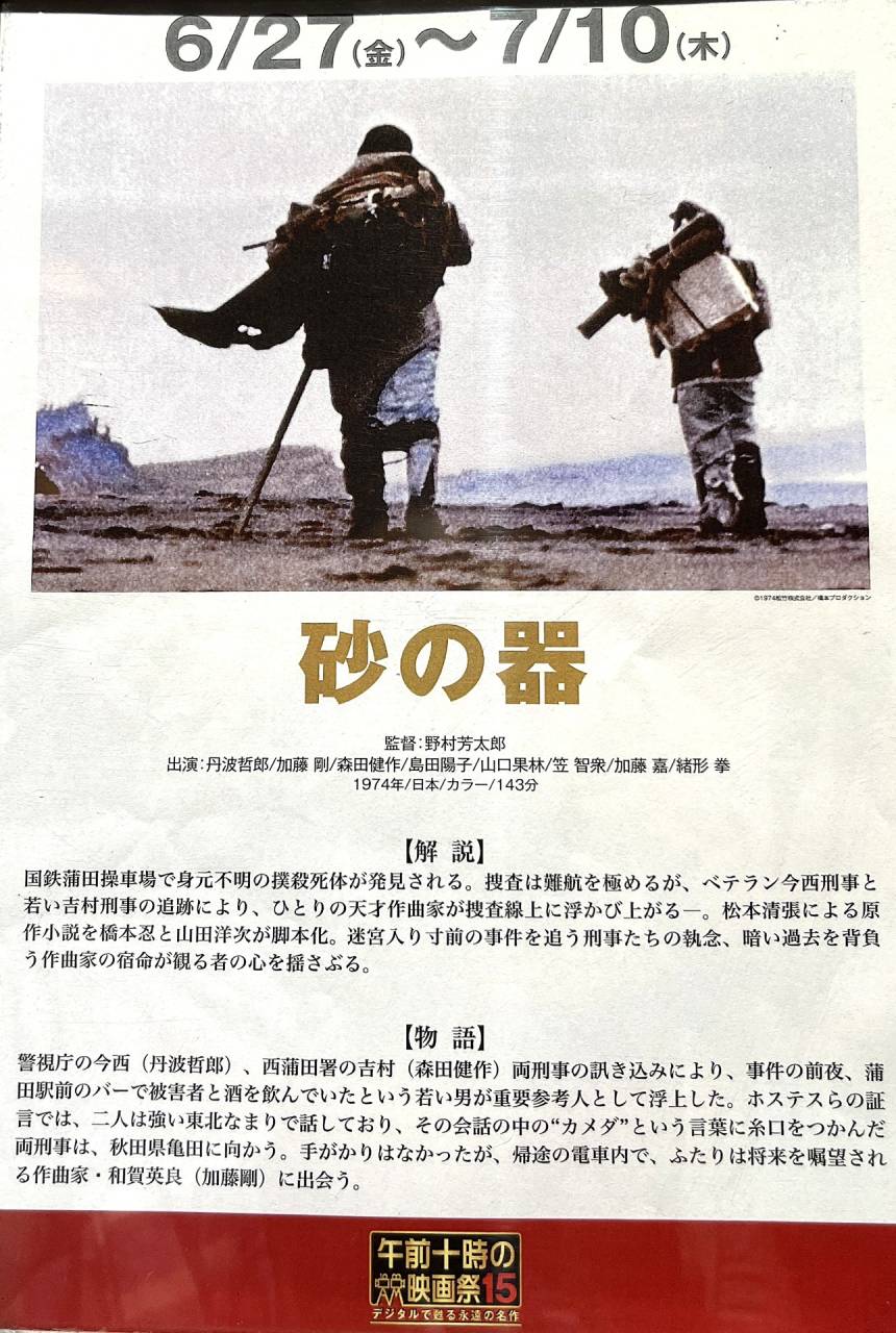 2025年7月30日 旅→読書→映画鑑賞 二月、島根県出雲へ旅行 目的は山陰の観光と美食 江津市の知人に 奥出雲「亀嵩駅」の 紹介を受けいざ出発!! 旅の最後にJR木次線「亀嵩駅」 かめだけへ 此処は一日上下17本程度の 列車が通る駅 50年ほど前から駅舎が蕎麦屋 になっております 訪問が15時過ぎになり 提供は終了 お土産の半生麺を購入 「ずわいがに」「のどぐろ」 「宍道湖の夕日」「出雲大社」 「足立美術館」等を 楽しみ、帰宅後に「亀嵩蕎麦」を 賞味、大変美味しかった この亀嵩駅では松本清張原作 「砂の器」の映画撮影が 過去に行われました 事件は東京蒲田での殺人事件が発端 トリスバーでの犯人の「東北訛り」「かめだ」の 言葉を手掛かりに捜査が始まる 丹波哲郎、森田健作、加藤剛出演の昭和49年封切作品です 帰宅後、「砂の器」を読む 友人に話すとまだ、そのトリスバーは現存していると聞き 社員で蒲田在住、M君に話すと即確認 現在は取り壊されマンションになっている写真を見ることに その後「午前10時の映画祭」で「砂の器」の 上映されている事を聞き映画鑑賞 2月から7月まで五か月に渡り楽しみが繋がりました 会長