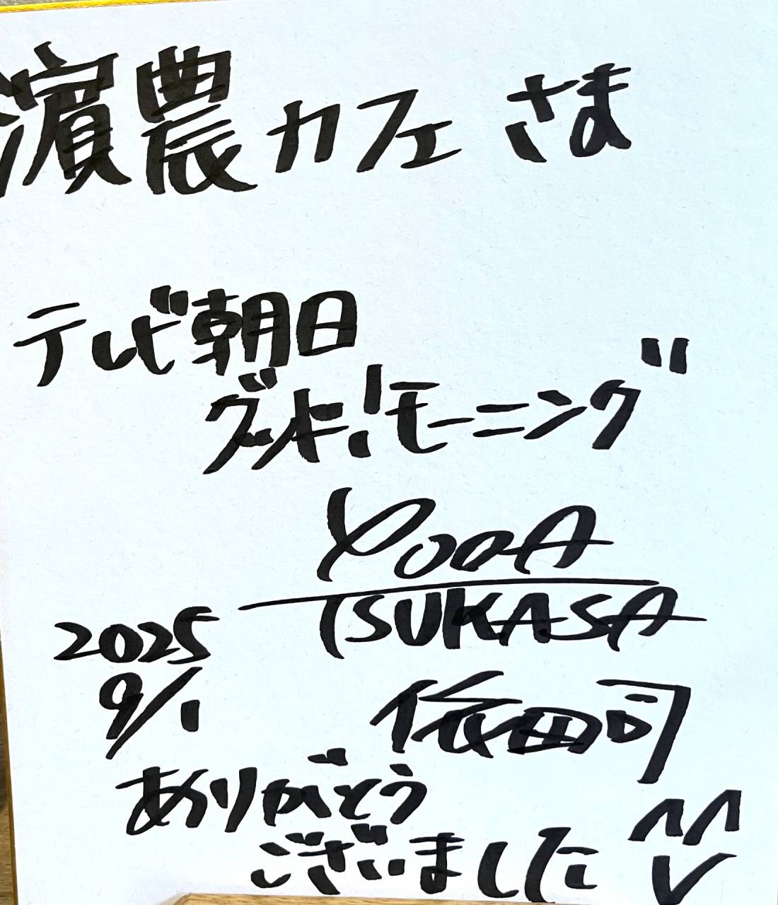 2025年9月24日 「いちじく大好き‼ TVにつられて」 先日、テレビ朝日放映 「グッドモーニング」で紹介された 鎌ヶ谷市にある「濱農カフェ」へlunchに伺いました 濱農カフェ 鎌ヶ谷は市川、松戸に隣接する まだまだ田園風景が残る 果樹栽培が盛んな地 秋の時期「梨」「葡萄」「栗」 観光客で賑わっておりました 運営は野菜作りで150年の歴史を積む濱田農園が母体 「蕪」「無花果」造りで日本野菜ソムリエ協会から 金賞を受けております カフェの目玉商品 「かぶおろしうどん」1,180円 「いちじく」600円を賞味 さっぱり味の蕪おろし 皮ごと食べる甘味たっぷりな無花果を 堪能したひと時でした 予約必須、インスタグラムをご参照ください 会長